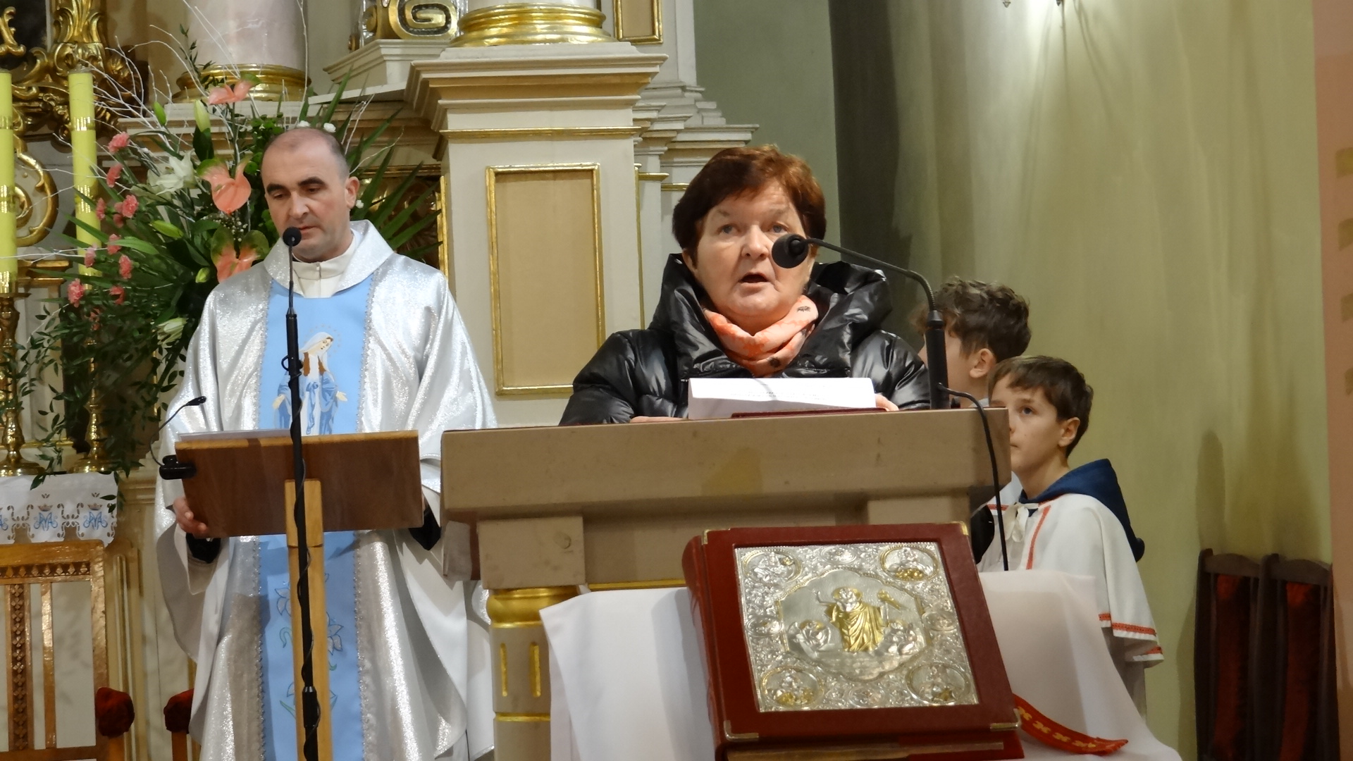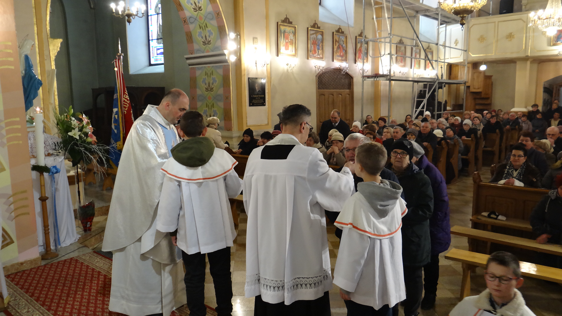 Mszy Św. przewodniczył ks. Janusz Marszałek proboszcz parafii i zarazem katecheta, przygotowujący dzieci do I komunii Św. W homilii ks. proboszcz podkreślił znaczenie i rolę Cudownego Medalika Niepokalanej oraz rolę Maryi, jaką Ona odgrywa w życiu każdego chrześcijanina, a szczególnie tych dzieci, które potrzebują ochrony i opieki Niepokalanej – Matki Pana Jezusa.